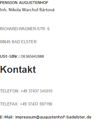 1.) Die Öffnungszeiten der Rezeption sind i. R. von Montag-Sonntag und an Feiertagen von 14 -16 Uhr. Für Fragen zur Buchung, zu Anfragen oder zum Aufenthalt steht das Personal vor Ort oder telefonisch unter 037437/597232 oder per E-mail Hotel@Augustenhof-badelster.de zur Verfügung.